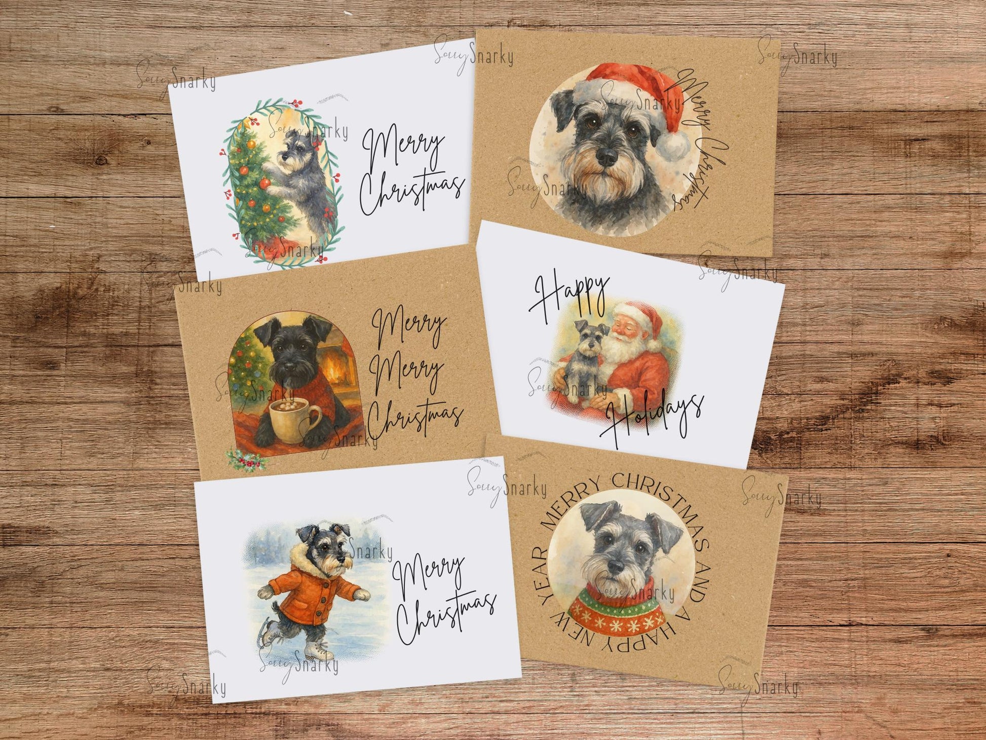 Miniature Schnauzer Christmas Cards: Vintage Holiday Greeting Set