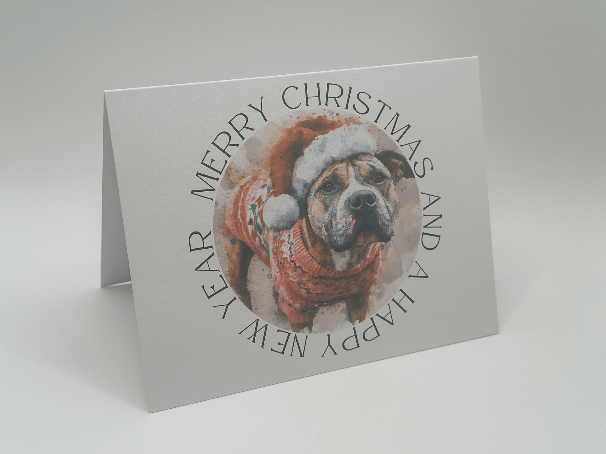 Pit Bull Christmas Card Set of 6 or 12 - Holiday Greeting Card Blank Inside Dog Puppy