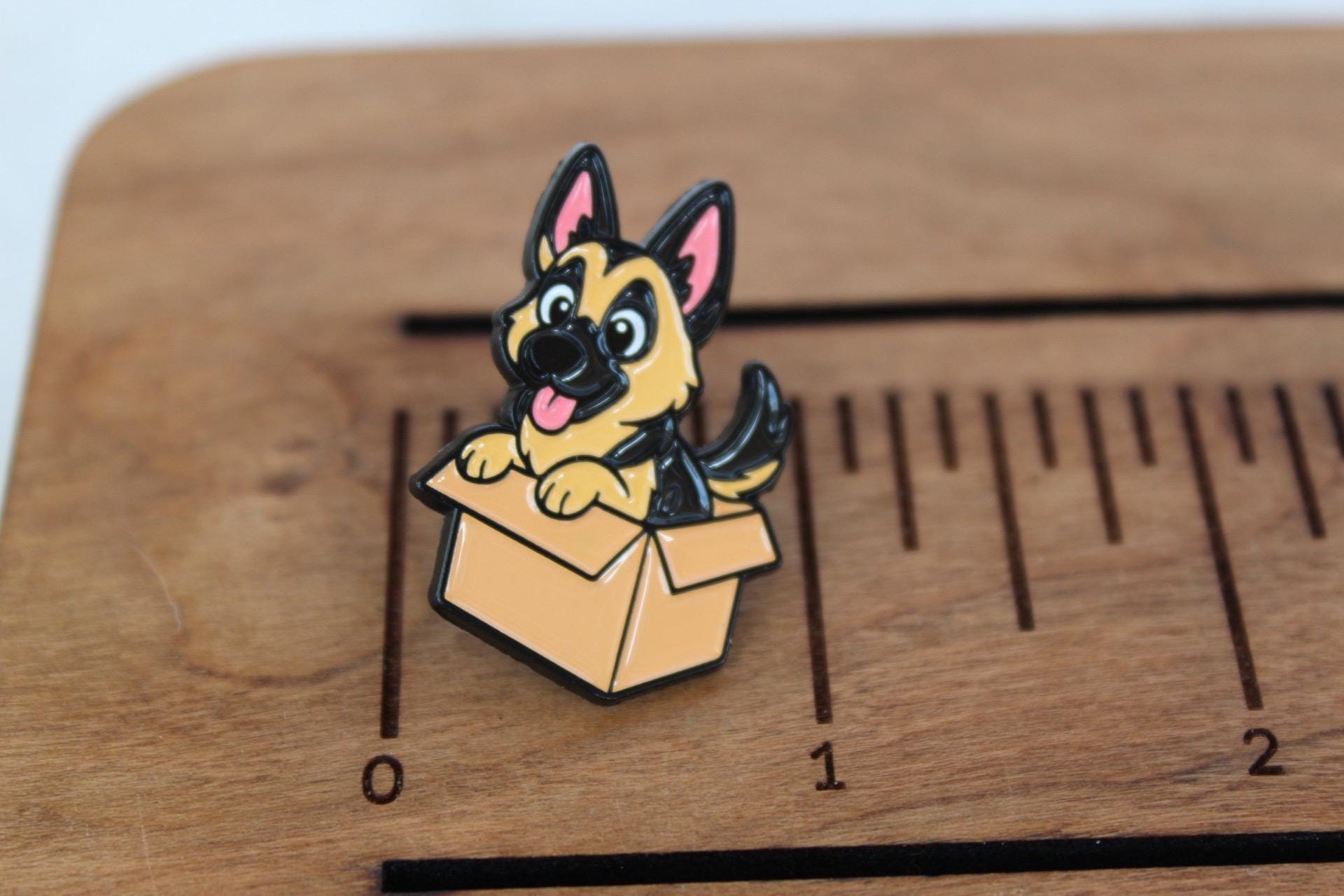 Puppy in a Box Enamel Pin, Dog Brooch
