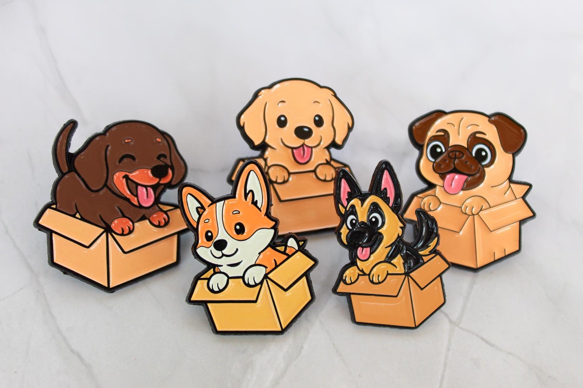 Your choice of breed! Each pin comes with a soft enamel backing.